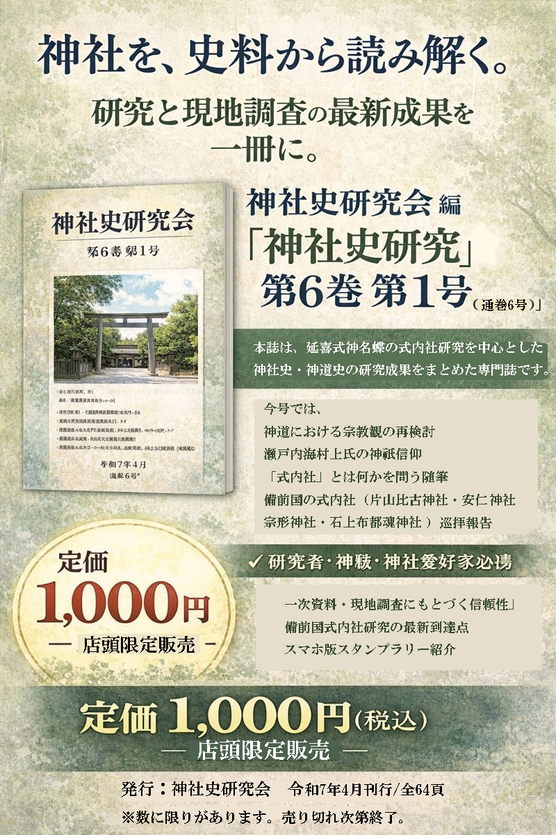 神社史研究会 機関誌「神社史研究」第六巻一号発刊(毎年4月発行)